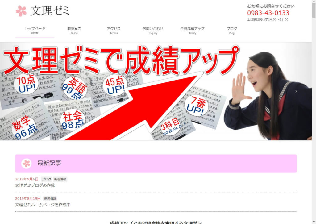 2019年9月13日 / 最終更新日 : 2019年11月18日 bunri 新着情報 文理ゼミホームページ 着々と進行中 文理ゼミのホームページ着々と進行中です。 新しいドメインで、新しいホームページ。 真剣に勉強することがとにかく楽しくなる文理ゼミの魅力を少しでも感じてもらえるホームページにしたいと思います。 成績アップと入試対策は文理ゼミ 全員成績アップ・圧倒的合格実績・そして数々の英雄伝説 ようこそ文理ゼミのホームページへ FacebookXBlueskyHatenaCopy